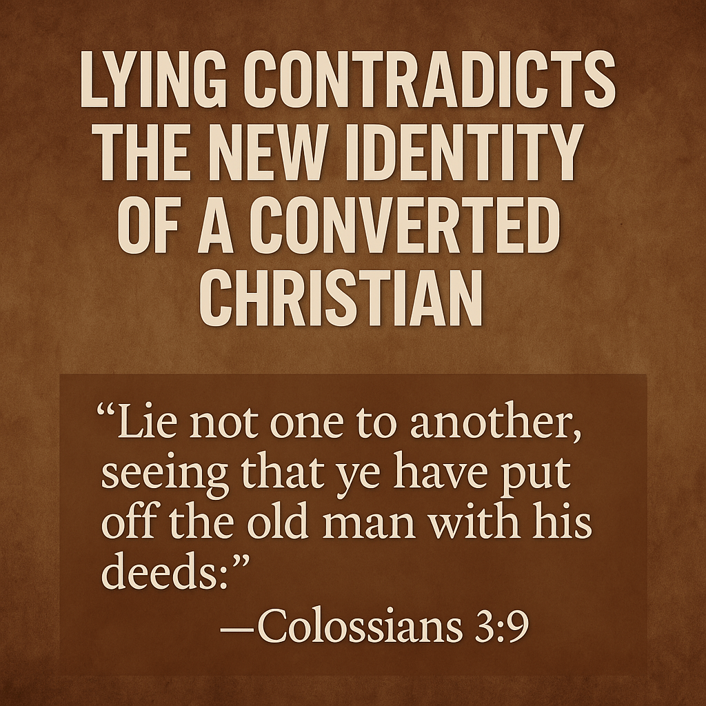 Believers must recognize that lying, in all its forms—half-truths, exaggerations, convenient omissions, false impressions—is a violation of our identity in Jesus. It does not matter whether the lie is told to protect feelings, save face, gain advantage, or avoid trouble. Christ died to make us truth-bearers, not manipulators.